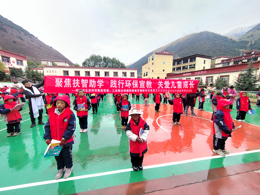 在助力產(chǎn)業(yè)發(fā)展的同時(shí),工作小組專程前往白玉縣蓋玉片區(qū)寄宿制學(xué)校開展教育幫扶,捐贈(zèng)書包、筆記本等學(xué)習(xí)用品2000余件,緩解學(xué)生用品短缺困境。工作小組還圍繞“生物多樣性” 開展特色宣講,設(shè)置環(huán)保小知識(shí)互動(dòng)環(huán)節(jié),幫助學(xué)生樹立生態(tài)保護(hù)理念;課后與學(xué)校教師交流,了解學(xué)生學(xué)習(xí)生活及教學(xué)需求,為后續(xù)長期教育幫扶積累了第一手資料。
