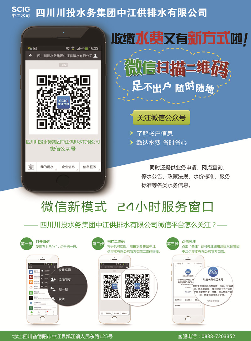 用戶通過關(guān)注“四川川投水務(wù)集團(tuán)中江供排水有限公司”微信公眾號(hào),綁定卡號(hào),即可繳納水費(fèi),查詢欠費(fèi)信息、繳費(fèi)明細(xì)、用量明細(xì),還可獲取收費(fèi)標(biāo)準(zhǔn)、營(yíng)業(yè)網(wǎng)點(diǎn),并及時(shí)了解停水信息及相關(guān)政策法規(guī)。通過這一平臺(tái),能夠?qū)崿F(xiàn)用戶與川投水務(wù)中江水司之間的信息互動(dòng),讓廣大用戶足不出戶,動(dòng)動(dòng)手指就能完成水費(fèi)繳費(fèi)操作,不受時(shí)間、地域限制,切實(shí)減少用戶辦事來回跑的現(xiàn)象,為用戶日常生活提供極大便利。下一步,川投水務(wù)中江公司還將不斷完善收費(fèi)系統(tǒng)和繳費(fèi)方式,增加微信“生活繳費(fèi)”接口和支付寶支付等便民服務(wù)項(xiàng)目。