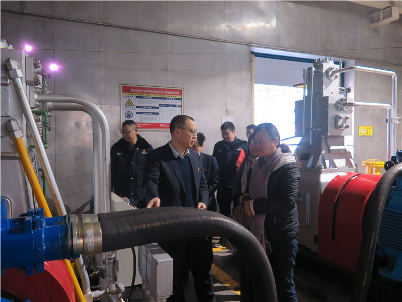 馬經(jīng)理一行首先到宏源CNG加油加氣站檢查安全生產(chǎn)情況,查看了車輛加油加氣現(xiàn)場、CNG壓縮機(jī)房、儲(chǔ)氣罐、儲(chǔ)油罐,現(xiàn)場詳細(xì)聽取了公司黨委書記、總經(jīng)理、安委會(huì)主任李旭東對建設(shè)微型消防站和CNG文化走廊的情況介紹。在查看微型消防站時(shí),馬經(jīng)理表示建設(shè)微型消防站很有必要,要加強(qiáng)應(yīng)急演練,確保全員能操作,在關(guān)鍵時(shí)刻起到效果。隨后馬經(jīng)理一行又到宏源公司天然氣儲(chǔ)配站進(jìn)行檢查,在檢查了天然氣工藝流程、壓力表檢定情況、儲(chǔ)氣罐后,她對宏源公司安全管理有序可控有效表示肯定。