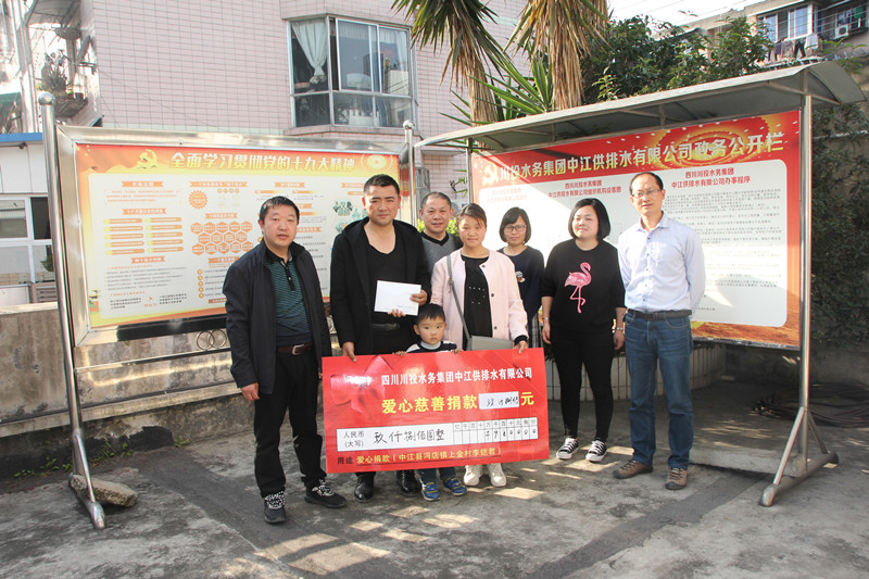 3月25日,中江水司發(fā)出了為公司幫扶的馮店鎮(zhèn)上金村貧困戶李武龍之子李鎧君的“獻(xiàn)愛心捐款倡議”,號(hào)召公司員工伸出援助之手,獻(xiàn)出微薄之力,為病人提供關(guān)懷和幫助。