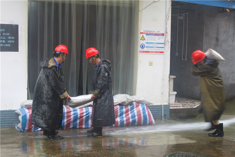 為進一步提高防汛應(yīng)急處置的實戰(zhàn)水平,6月25日上午,榮縣水司冒雨組織了防洪、防汛、防澇演練活動。此次演練模擬在天氣突然強降雨的情況下,接到險情報告后,按照演練方案立即啟動防洪、防汛、防澇應(yīng)急預(yù)案。值班人員發(fā)現(xiàn)險情后,立即向部室負責(zé)人報告,參演人員迅速領(lǐng)取防汛器具并用沙袋進行防護,阻擋洪水進入泵房。與此同時,并啟用抽水泵排出漫入的雨水,當(dāng)發(fā)現(xiàn)漫入的水已淹沒機泵等設(shè)施設(shè)備時,當(dāng)班人員立即切斷總配電室電源。至此,演練結(jié)束并清理現(xiàn)場。