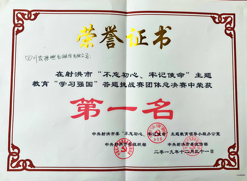此前,“不忘初心、牢記使命”主題教育“學(xué)習(xí)強(qiáng)國(guó)”答題挑戰(zhàn)個(gè)人決賽和團(tuán)體決賽在射洪市委第三會(huì)議室舉行,來自全市65支參賽隊(duì)伍參加比賽,其中前10名進(jìn)入團(tuán)體總決賽。本次決賽以“學(xué)習(xí)強(qiáng)國(guó)”APP中的“挑戰(zhàn)答題”為平臺(tái),由馮秋文、黃黎黎、胡仁山組成的宏源公司參賽隊(duì)以30分鐘答對(duì)535道挑戰(zhàn)答題的成績(jī)榮獲團(tuán)體決賽一等獎(jiǎng),并順利進(jìn)入團(tuán)體總決賽。宏源公司馮秋文以30分鐘答對(duì)585道挑戰(zhàn)答題的成績(jī)榮獲個(gè)人決賽一等獎(jiǎng)。